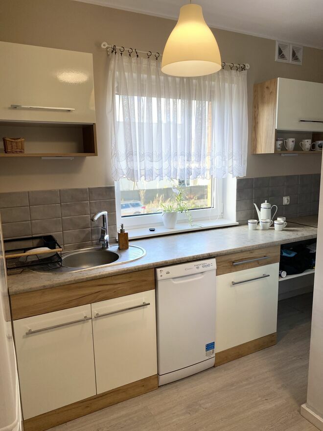 PROMOCJA BLACK WEEKS 385000 zł.Sprzedam mieszkanie dwupokojowe na 1 piętrze bloku z 2020 r. Mieszkanie znajduje się w Bolszewie przy ul Polnej do mieszkania przynależy balkon Ok. 15m oraz udział w drodze dojazdowej i prywatne miejsce postojowe z wpisem w akcie notarialnym. Mieszkanie posiada umeblowaną kuchnię z płytą elektryczną, zmywarką, lodówką. W łazience pralka kabina prysznicowa , w salonie meble widoczne na zdjęciach sypialnia szafa narożna reszta do własnej aranżacji.Na balkon można wyjść z salonu oraz sypialni.duże przestronne okna co czyni je jasnym.Mieszkanie odświeżone gotowe do zamieszkania. Mieszkanie własnościowe do wydania od stycznia, oględziny i ewentualna umowa rezerwacyjna możliwa od teraz. W pobliżu znajduje się Żabka, Biedronka przychodnia apteka oraz w niedługim czasie galeria. Ogrzewanie podłogowe na parterze wspólna kotłownia w łazience dodatkowy kaloryfer. Blok monitorowany klatka i parking.